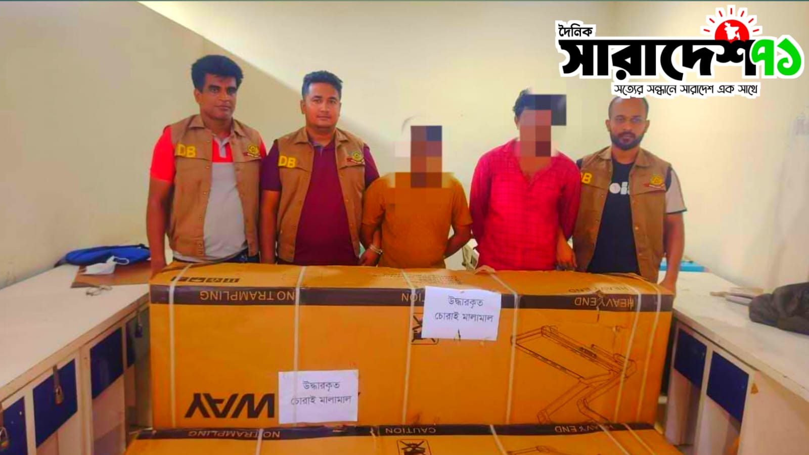 —গ্রেফতার হয়। তাদের দেওয়া তথ্যের ভিত্তিতে ঘটনাস্থল থেকে দুইটি Motorized Treadmill (Model T56A) উদ্ধার করা হয়।