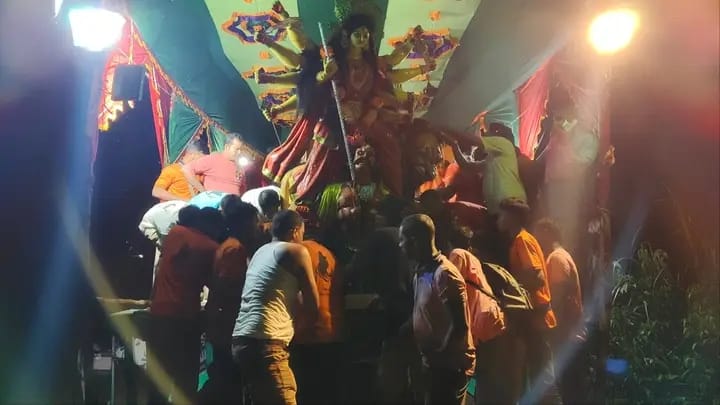 শারদীয় দূর্গোৎসবের সমাপ্তি হরিরামপুরে, ভক্তরা অশ্রুসিক্ত নয়নে বিদায় জানালেন দূর্গা মাকে