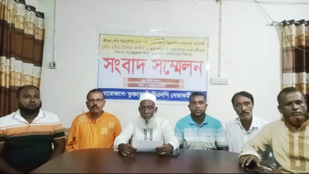 গাজীপুরের শ্রীপুরে পৌর বিএনপির আহ্বায়ক কমিটির সদস্য ও স্থানীয় নেতা নঈম উদ্দিন ফকিরসহ তার সহযোগী নেতাকর্মীদের নামে অপপ্রচারের প্রতিবাদে সংবাদ সম্মেলন করেছেন ভুক্তভোগী সদস্যরা।