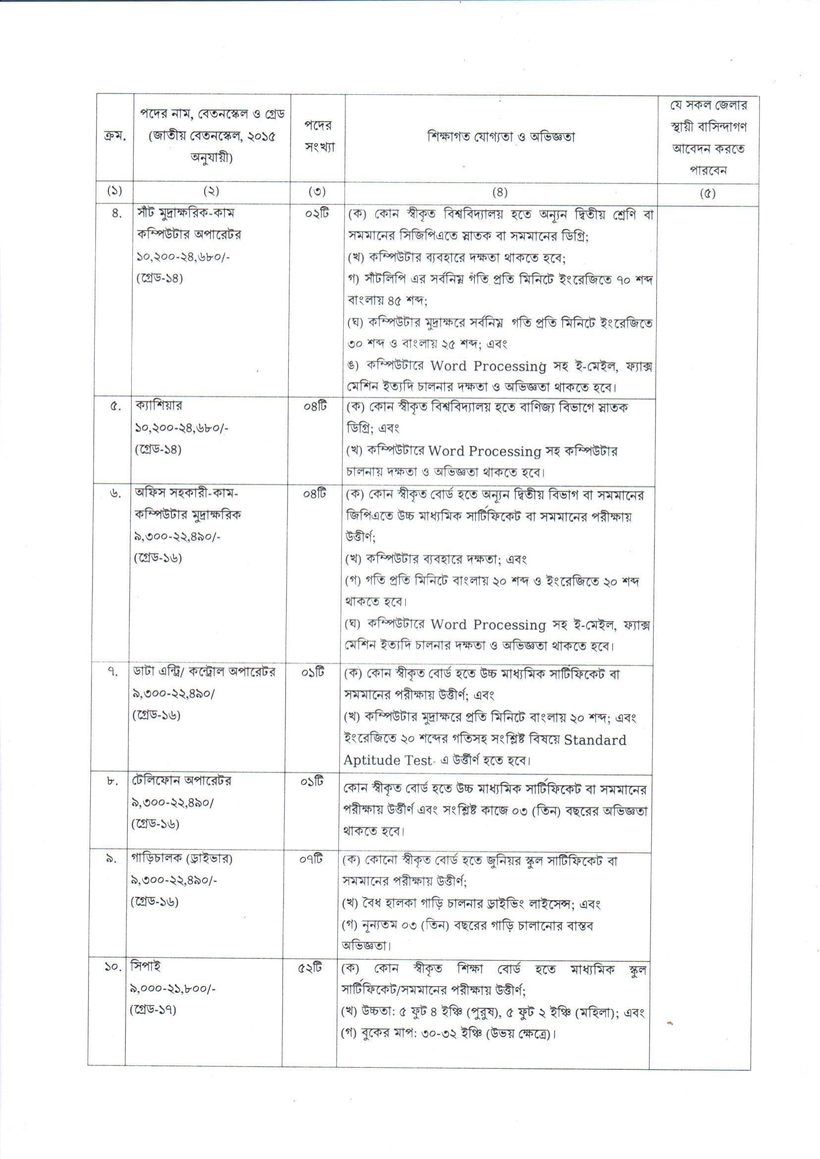 - অন্যান্য যোগ্যতা: প্রতি মিনিটে বাংলায় ২৫ ও ইংরেজিতে ৩০ শব্দ টাইপিং গতি থাকতে হবে