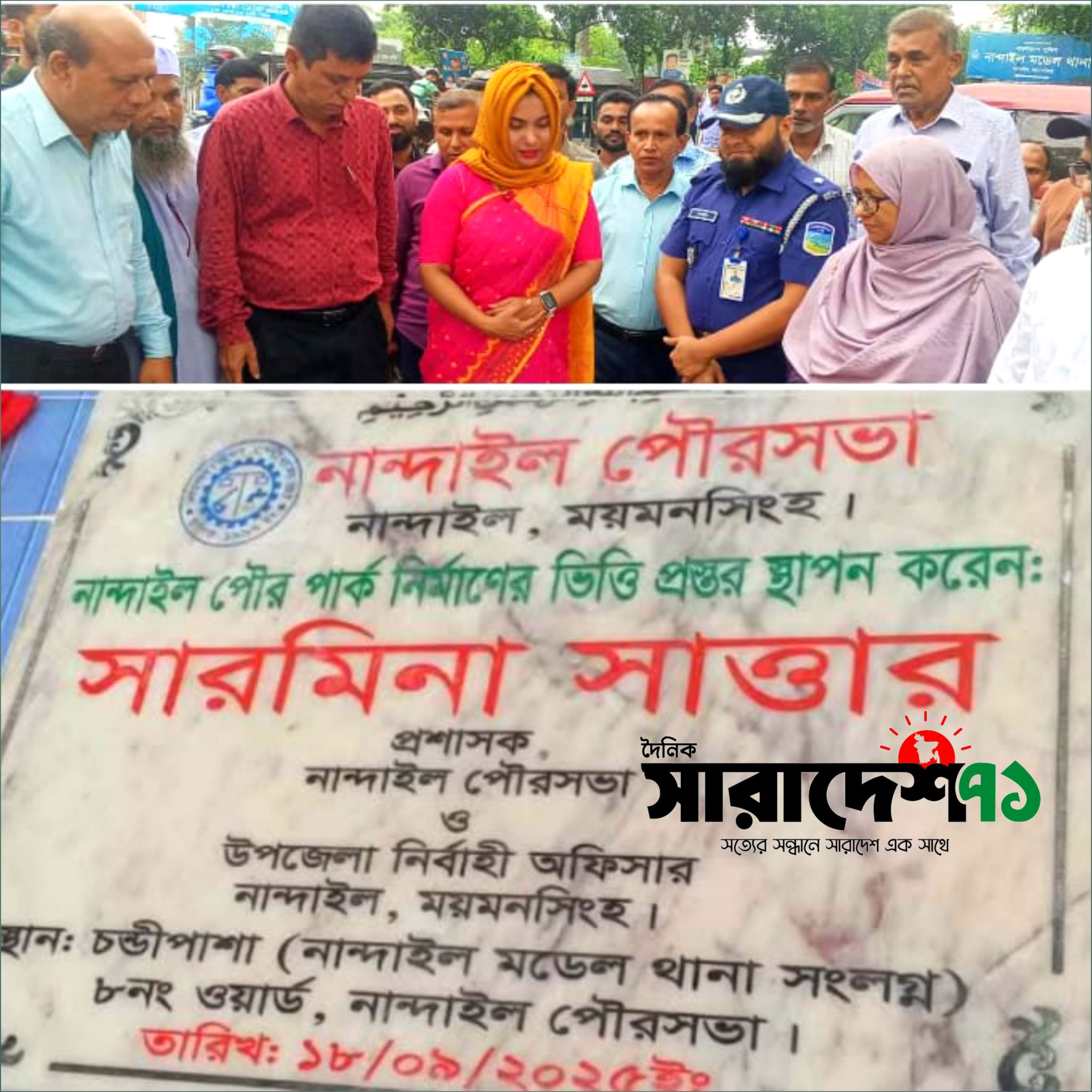 নান্দাইলে পৌর পার্কের ভিত্তিপ্রস্তর স্থাপন, আলোড়ন সৃষ্টি করলেন ইউএনও সারমিনা সাত্তার