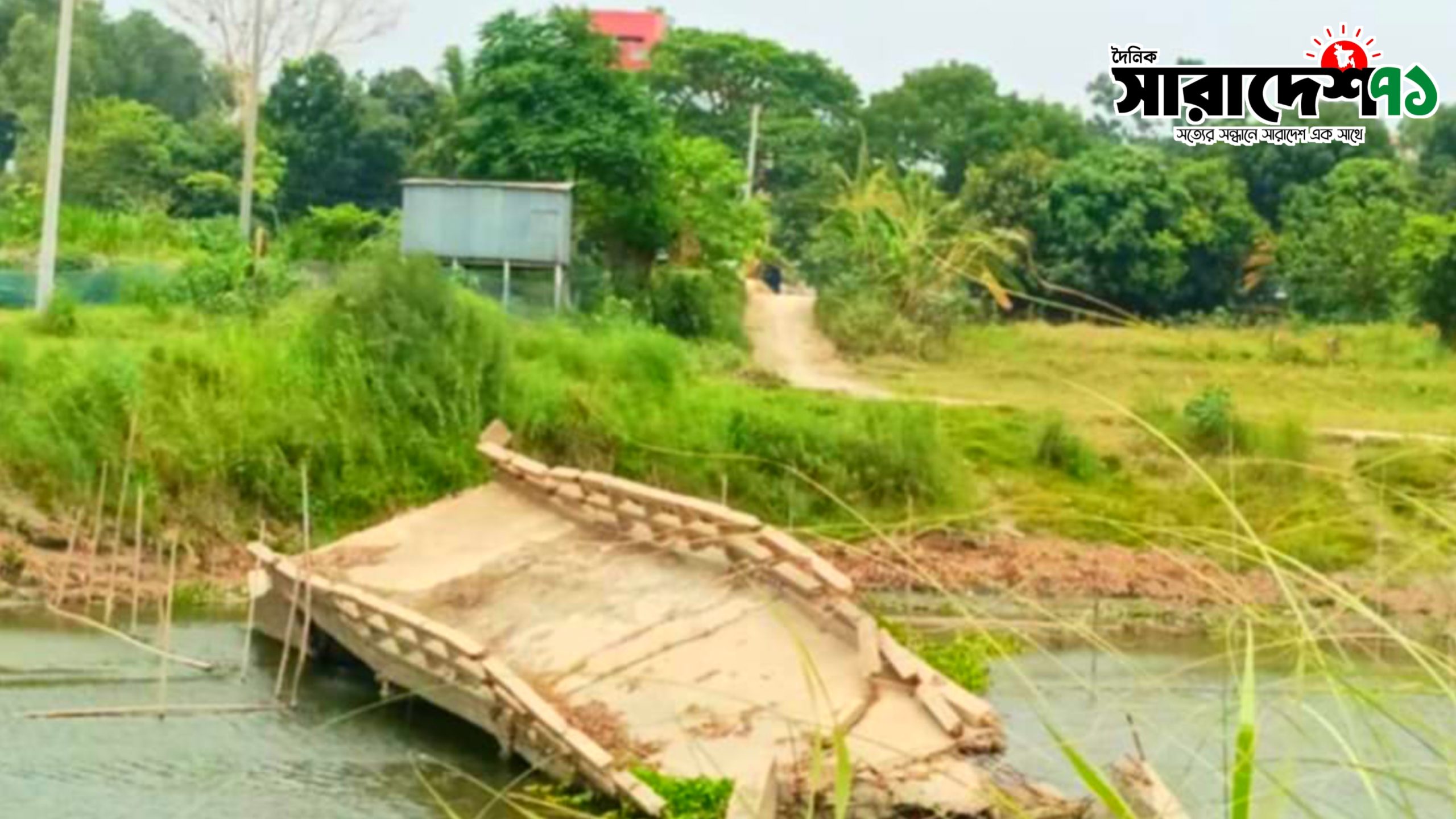 পানিতে তলিয়ে গেছে হরিরামপুরের ব্রীজ, ৫ বছর অকেজো — বর্ষায় চরাঞ্চলবাসীর একমাত্র ভরসা নৌকা