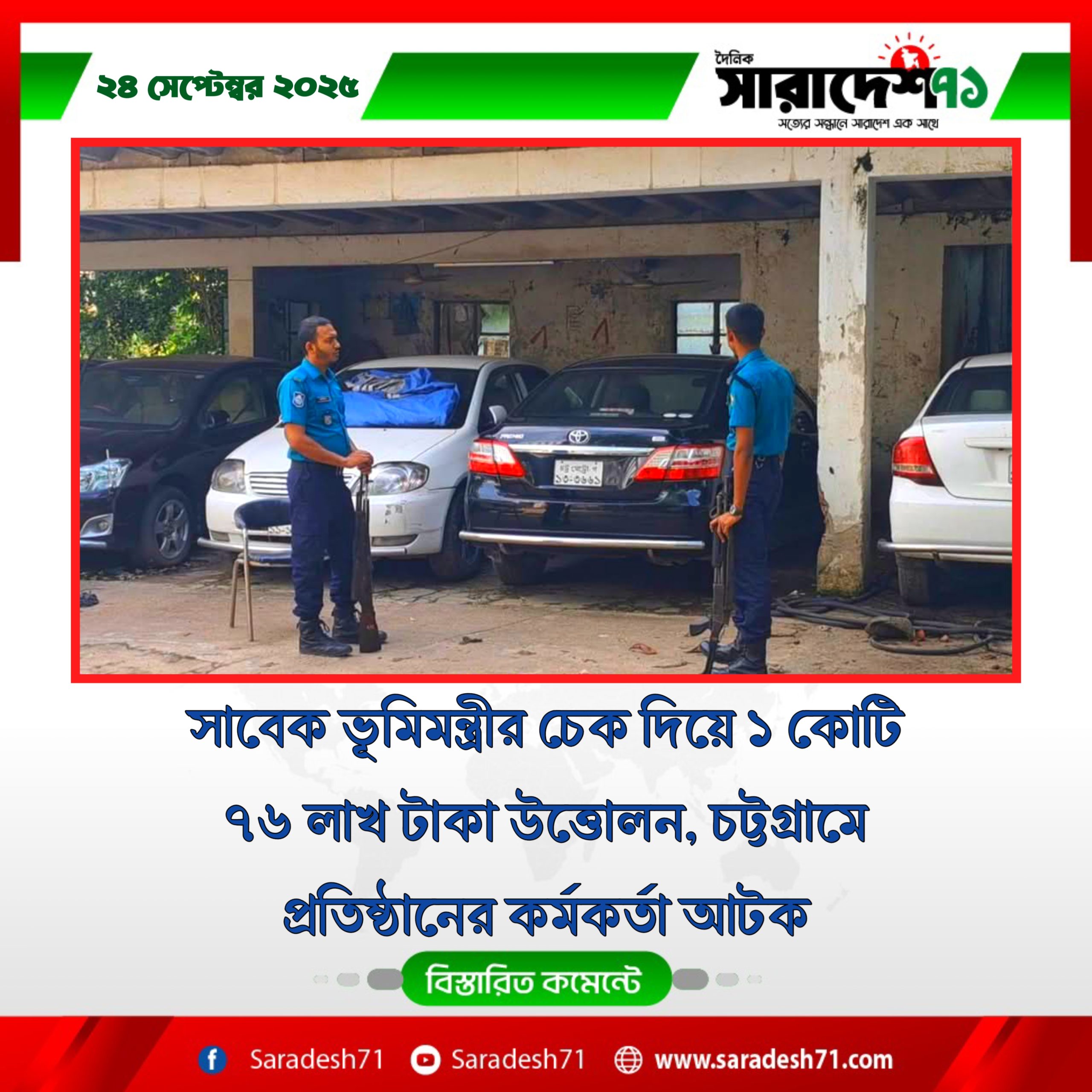 নিজস্ব প্রতিবেদক চট্টগ্রাম প্রতিনিধি সাবেক ভূমিমন্ত্রী ও বিদেশে পলাতক সাইফুজ্জামান চৌধুরী জাবেদের নামে ইস্যু করা ১১টি চেক ব্যবহার করে চারটি