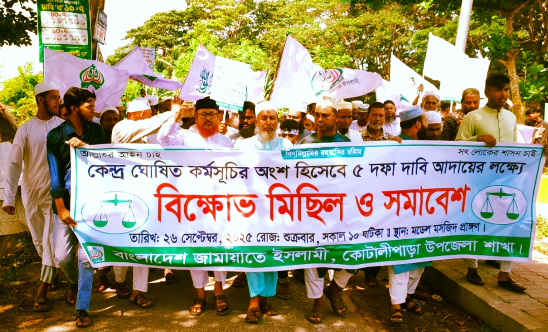 কোটালীপাড়ায় জামায়াতের বিক্ষোভ মিছিল ও সমাবেশে ৫ দফা দাবি